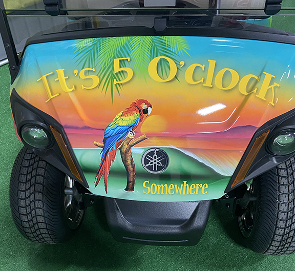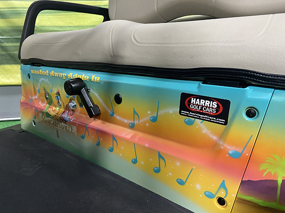 Jimmy Buffet fans look out! This golf car is the perfect vehicle for…Nibblin’ on sponge cake…Watchin’ the sun bake!