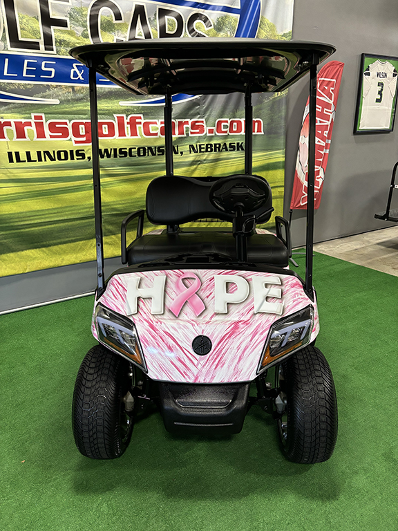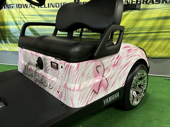 Breast Cancer Awareness Month is October. It is a time devoted each year to educating everyone about breast cancer. This custom BELIEVE golf car is a great way to show support and create awareness.
