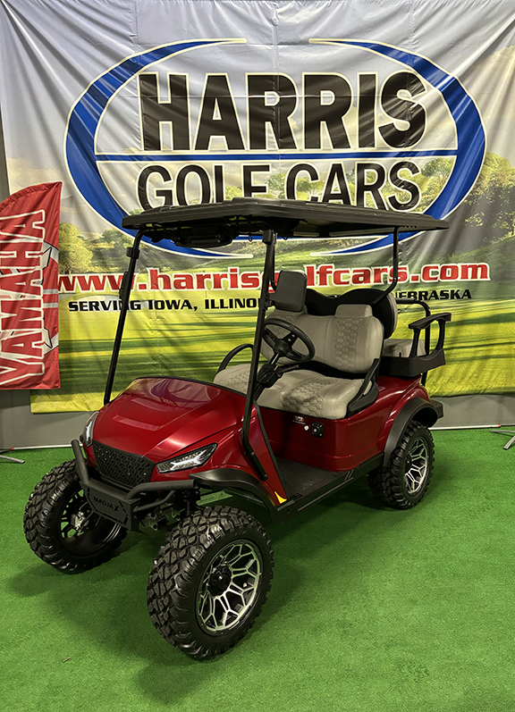 Check out this 2023 MadJax XSeries 4-passenger vehicle with a cherry red body, gray premium seats and 14″ mag wheels with offroad tires. This vehicle is slightly used with roughly 5 hours on it, but very clean and inspected. Contact Harris Golf Cars to learn more!