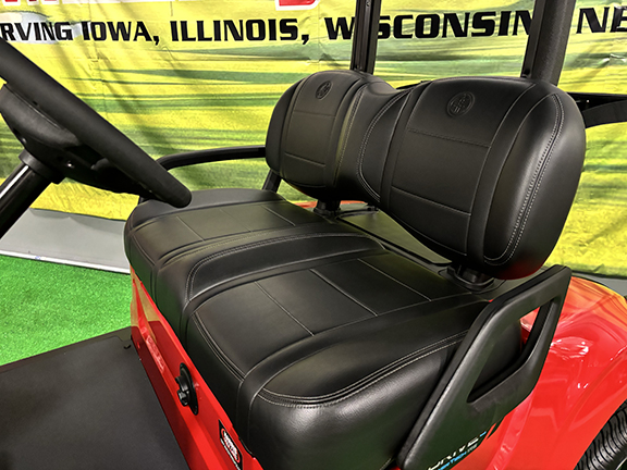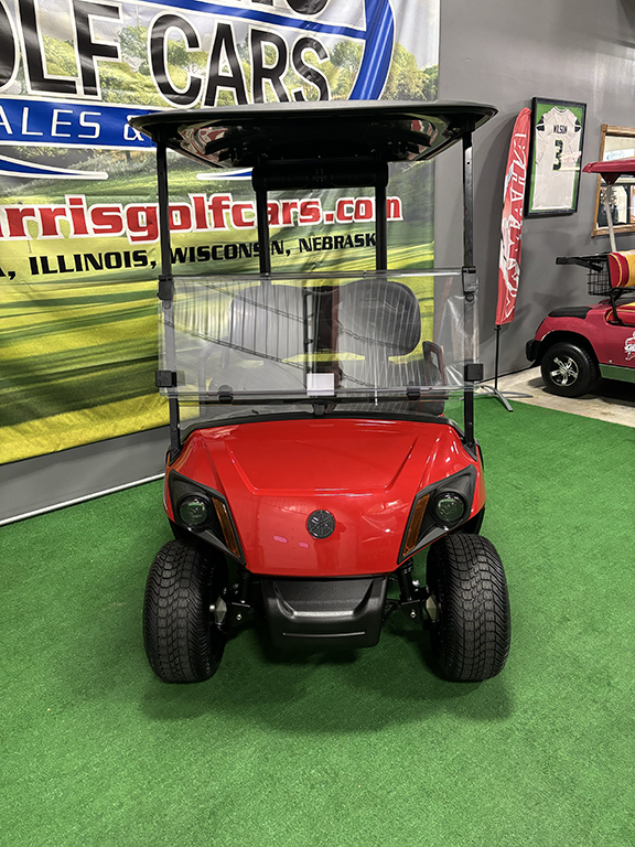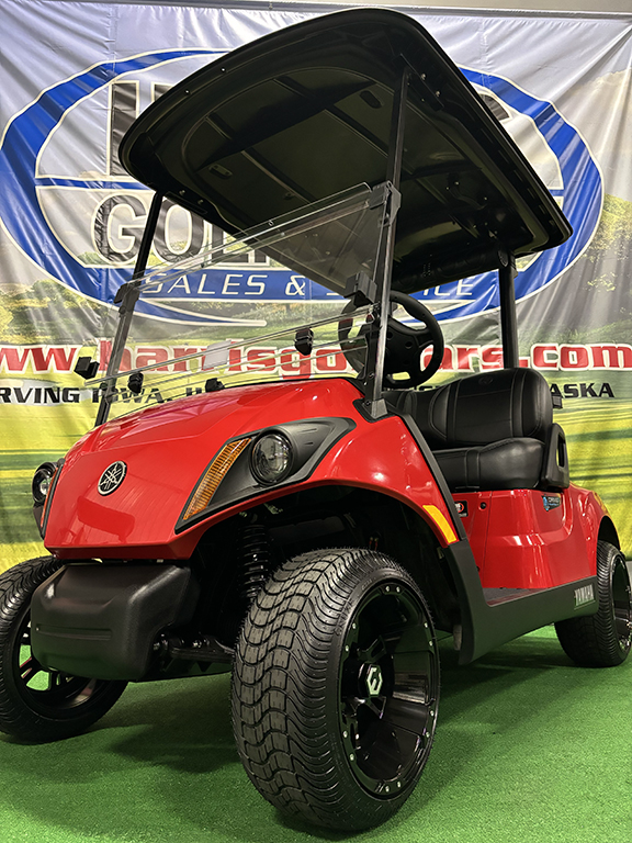 ON SALE NOW! Save $500 on this 2024 Yamaha AC PTV LI electric golf car with a coral red body, black top, black touring seat and much more. Contact Harris Golf Cars for more information!
