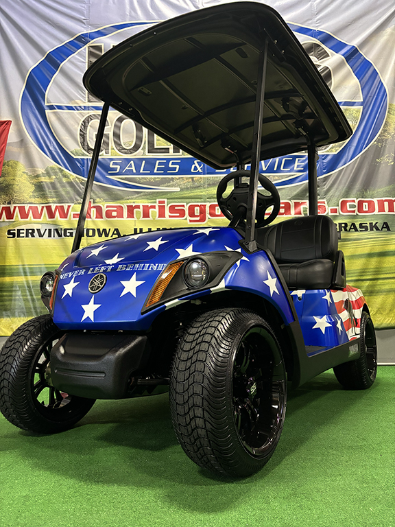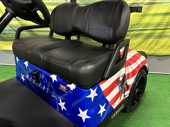 This brand new 2025 Yamaha Drive 2 EFI PTV custom “Merica” golf car is an eye catching creation that you need to see in person. Contact us for more information!