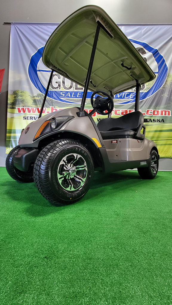 Check out this 2025 Yamaha Drive 2 EFI PTV gas golf car has a titan matte body, upgraded black seats, stone top and much more. Contact Harris Golf Cars today if you would like to learn more!