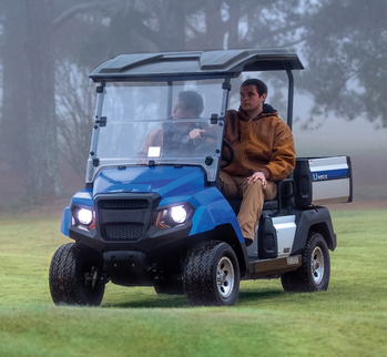 Maximum Forward Speed—19.5 mph (31.4 km/h)Maximum Reverse Speed—17.5 mph (28 km/h)Minimum Turning Radius—3.48 mCHASSIS:FRAME: HybriCore™ chassis features a robotic welded automotive ladder-style steel frame protected with a multi-step full-immersion phosphate treatment, electro-deposition epoxy-based coating, and an electrostatic applied polyester/urethane powder topcoatBODY: Custom-formulated thermoplastic olefin painted with a two-part top coat of high-luster automotive-grade polyurethaneSTEERING: Self-compensating double reduction helical rack-and-pinionFRONT WHEEL SUSPENSION: Tru-Trak II™ fully independent automotive-style strut suspensionREAR WHEEL SUSPENSION: Unit swing arm with DUAL RATE coil springs over hydraulic shock absorbersBRAKES: Self-adjusting mechanical, rear wheel drum brakes